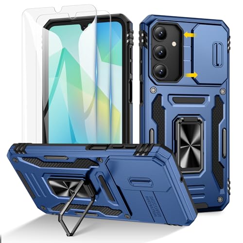 Doeshine for Samsung Galaxy A16 Case, 2 Pack Screen Protector, with 360°Rotate Ring Kickstand & Slide Camera Cover, Shockproof Military Drop Protection Cases for Galaxy A16 2024 (Navy)