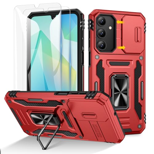 Doeshine for Samsung Galaxy A16 Case, 2 Pack Screen Protector, with 360°Rotate Ring Kickstand & Slide Camera Cover, Shockproof Military Drop Protection Cases for Galaxy A16 2024 (Red)