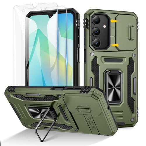 Doeshine for Samsung Galaxy A16 Case, 2 Pack Screen Protector, with 360°Rotate Ring Kickstand & Slide Camera Cover, Shockproof Military Drop Protection Cases for Galaxy A16 2024 (Olive Green)