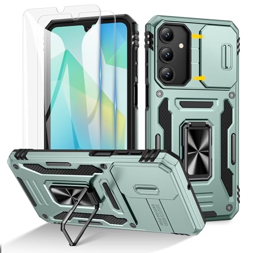 Doeshine for Samsung Galaxy A16 Case, 2 Pack Screen Protector, with 360°Rotate Ring Kickstand & Slide Camera Cover, Shockproof Military Drop Protection Cases for Galaxy A16 2024 (Green)