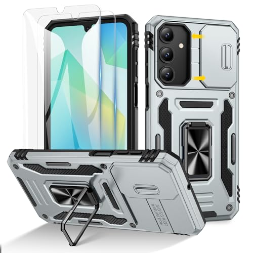 Doeshine for Samsung Galaxy A16 Case, 2 Pack Screen Protector, with 360°Rotate Ring Kickstand & Slide Camera Cover, Shockproof Military Drop Protection Cases for Galaxy A16 2024 (Grey)
