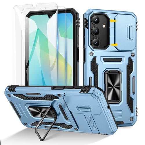 Doeshine for Samsung Galaxy A16 Case, 2 Pack Screen Protector, with 360°Rotate Ring Kickstand & Slide Camera Cover, Shockproof Military Drop Protection Cases for Galaxy A16 2024 (Blue)