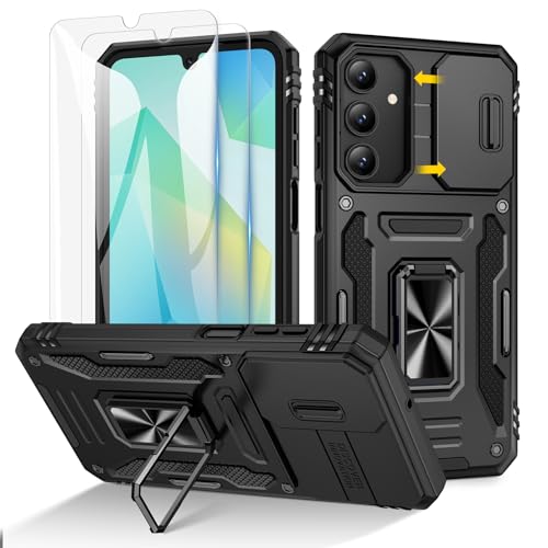 Doeshine for Samsung Galaxy A16 Case, 2 Pack Screen Protector, with 360°Rotate Ring Kickstand & Slide Camera Cover, Shockproof Military Drop Protection Cases for Galaxy A16 2024 (Black)
