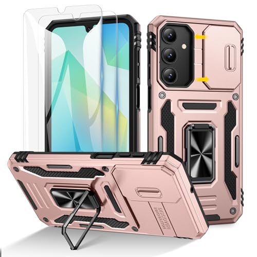 Doeshine for Samsung Galaxy A16 Case, 2 Pack Screen Protector, with 360°Rotate Ring Kickstand & Slide Camera Cover, Shockproof Military Drop Protection Cases for Galaxy A16 2024 (Rose Gold)