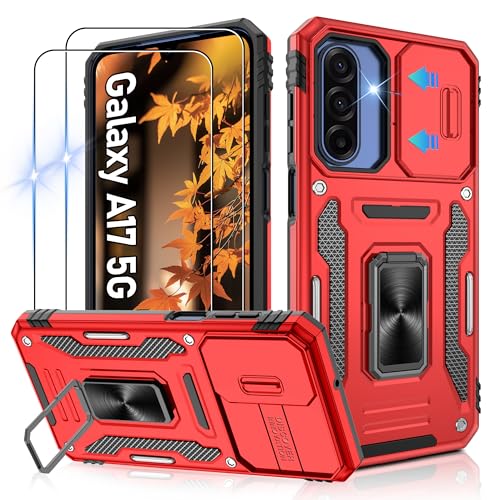 AOUIA for Samsung Galaxy A17 Case with 2-Pack Screen Protector, 3-in-1 Set Cover, 360°Rotating Ring Stand, Military Protection, Shockproof Phone Case for Samsung A17 5G, Red