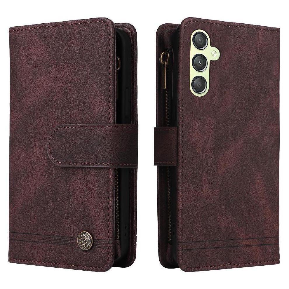 (Brown) Wallet Case for Samsung Galaxy A25/a24 5g Scratch Resistant Card Slot Kickstand Magnetic Closure Wrist Strap