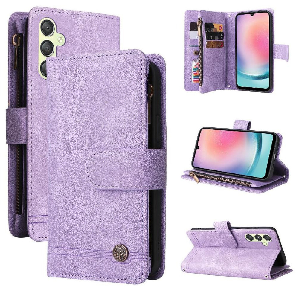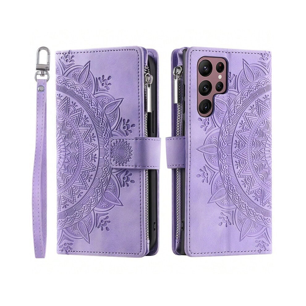 (Doka Totem - Purple, Samsung A24 4G/A25 5G) Suitable for Samsung S24ultra multi-carat zipper bag mobile phone leather case S23FE Mandala embossed car