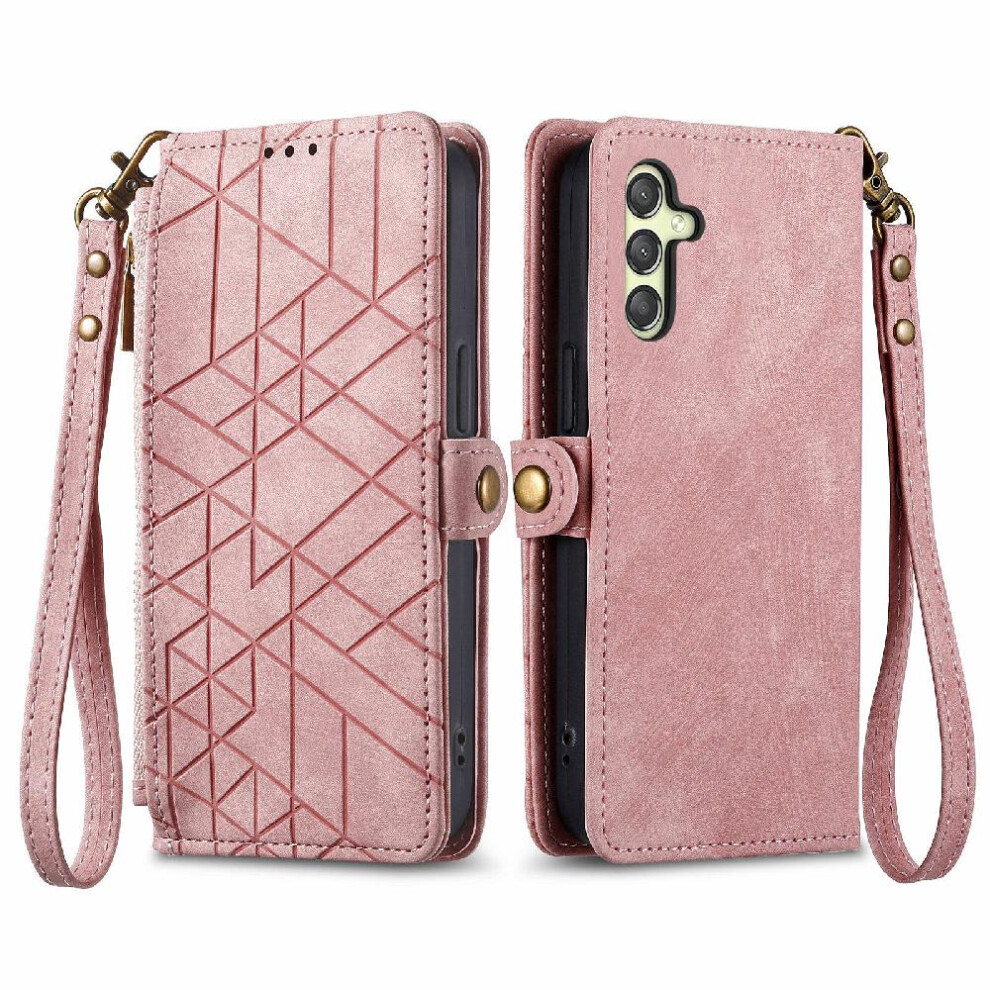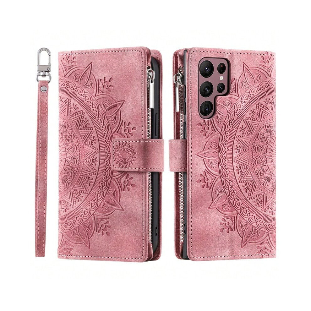 (Doka Totem - Pink, Samsung A24 4G/A25 5G) Suitable for Samsung S24ultra multi-carat zipper bag mobile phone leather case S23FE Mandala embossed card