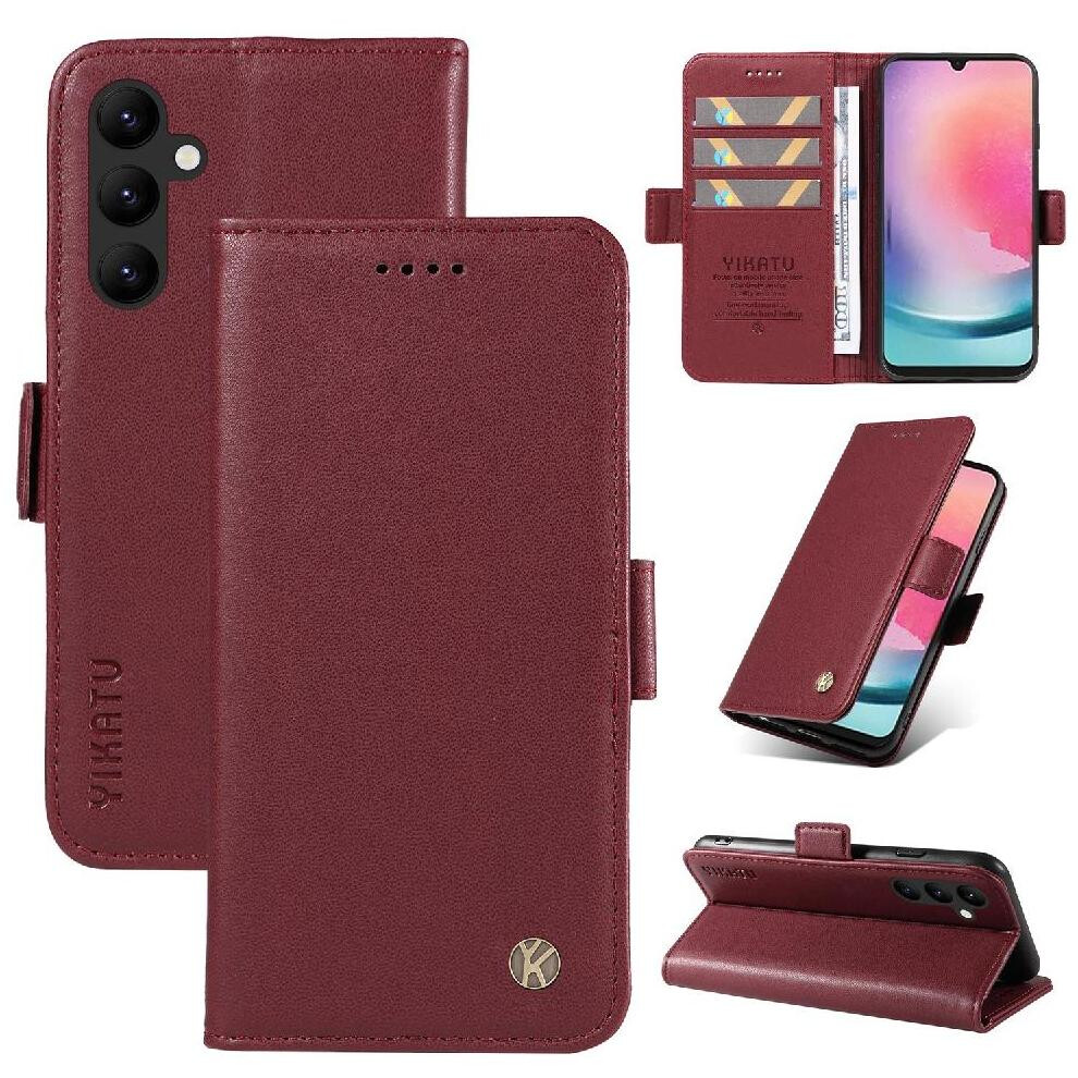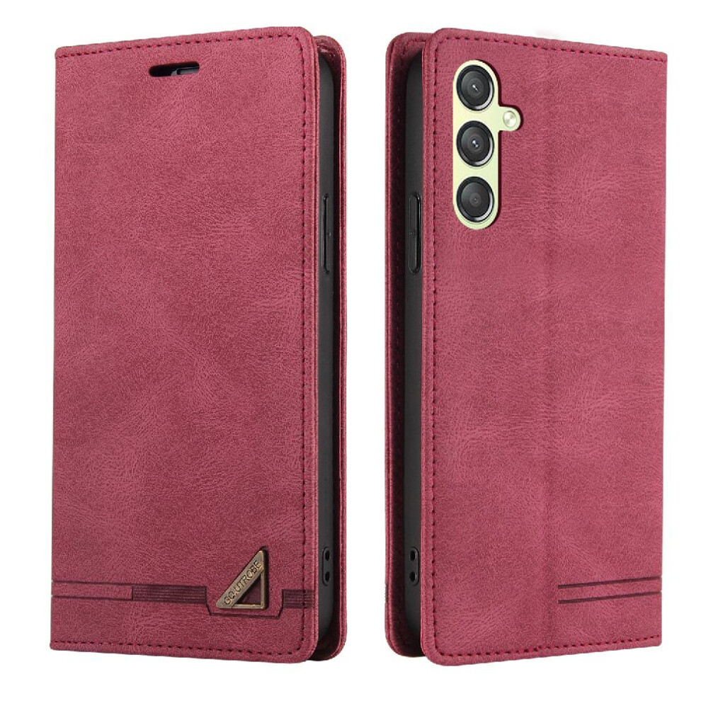 (wine red, Samsung A24 4G/A25 5G) Business Genuine Leather Wallet Case for iPhone 13 12 11 Card Holder Strong Magnetic Flip Cover For Samsung S22 S21