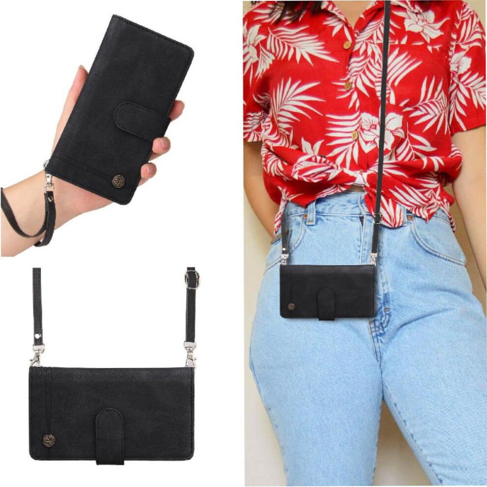 (Black) Compatible with Samsung Galaxy A24 5g Short Trap Wallet Magnetic Closure Card Slots Long Strap