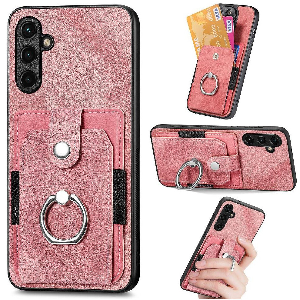 (Pink) Case for Samsung Galaxy A24 5g Stand Crad Slot Ring Holder Magnetic Car Mount