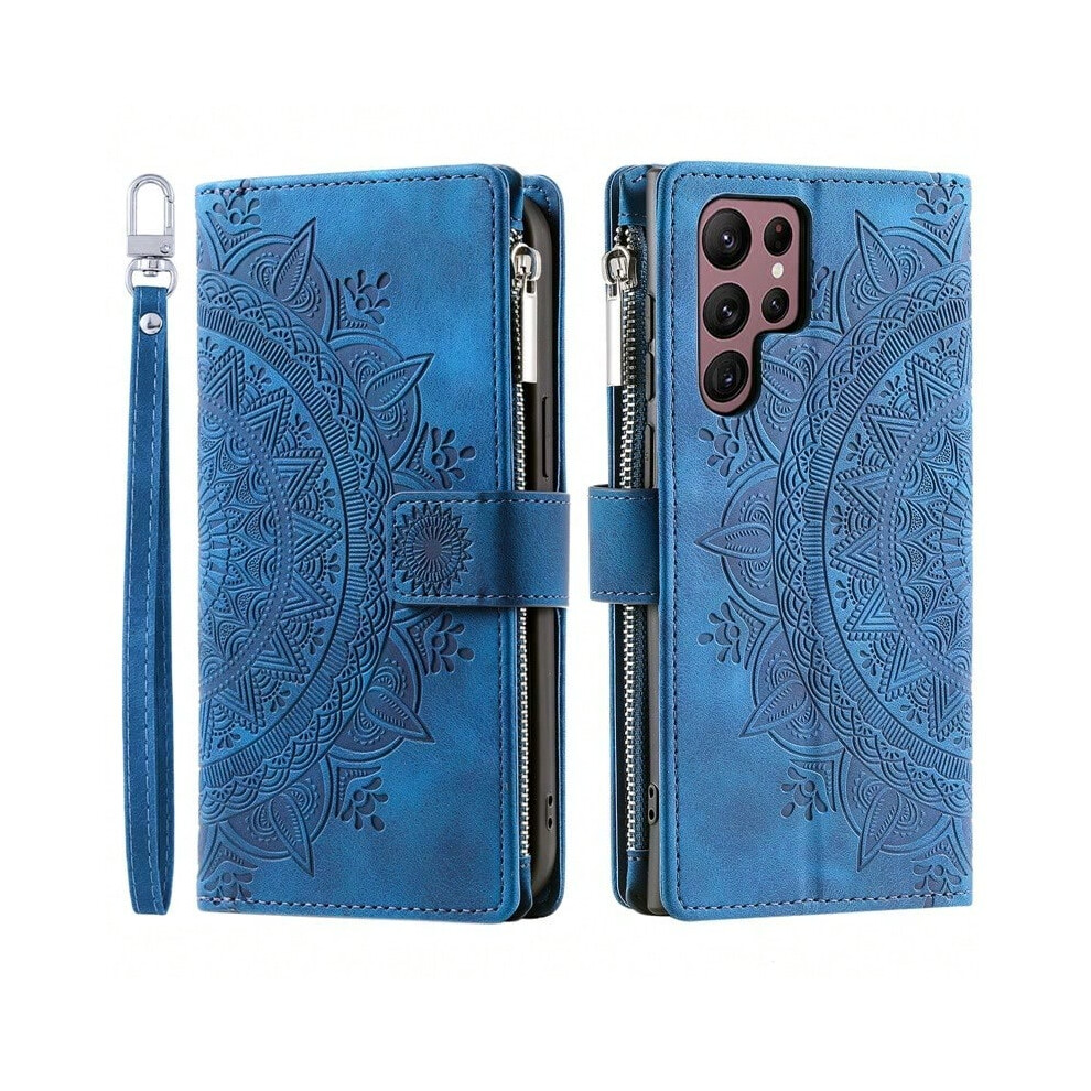 (Doka Totem - Blue, Samsung A24 4G/A25 5G) Suitable for Samsung S24ultra multi-carat zipper bag mobile phone leather case S23FE Mandala embossed card