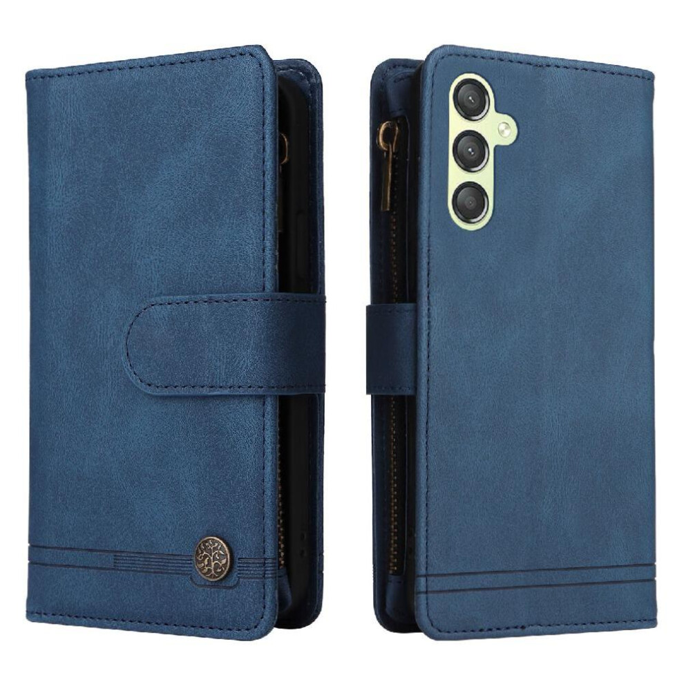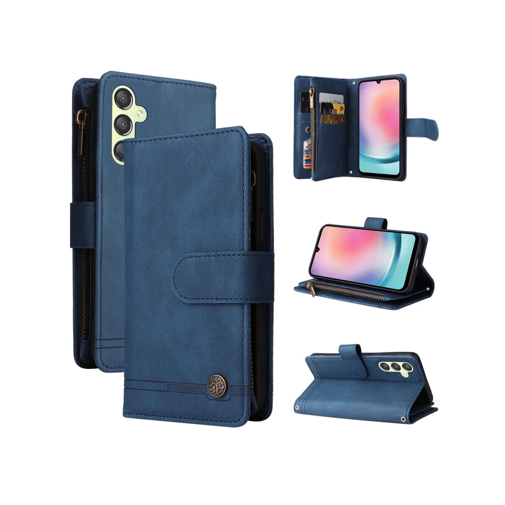 For Samsung Galaxy A24 4G / 5G / A25 5G Skin Feel Multi-Card Wallet Zipper Leather Phone Case(Blue)