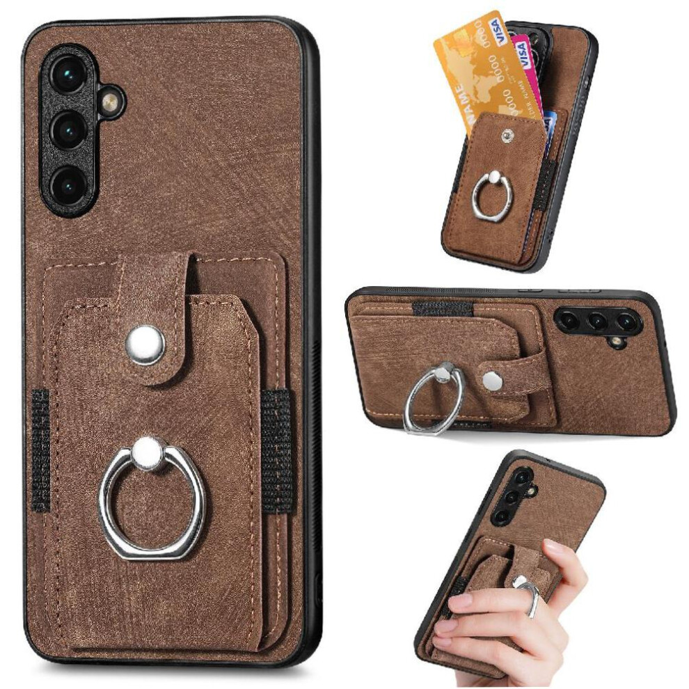 (Brown) Case for Samsung Galaxy A24 5g Stand Crad Slot Ring Holder Magnetic Car Mount