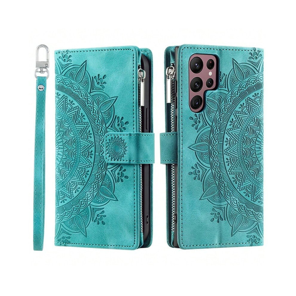 (Doka Totem - Green, Samsung A24 4G/A25 5G) Suitable for Samsung S24ultra multi-carat zipper bag mobile phone leather case S23FE Mandala embossed card