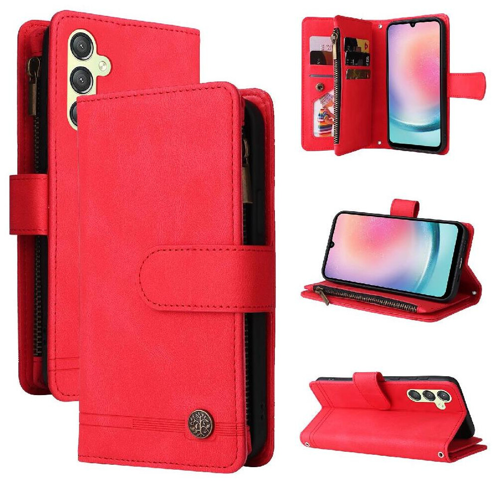 (red, Samsung A24 5G) Luxury Leather Flip Wallet Case For Samsung Galaxy A33 A23 A15 A25 A16 A32 A52 A54 A34 A13 A53 5G S24 A55 S21 S22 S23 A14 A35 A2