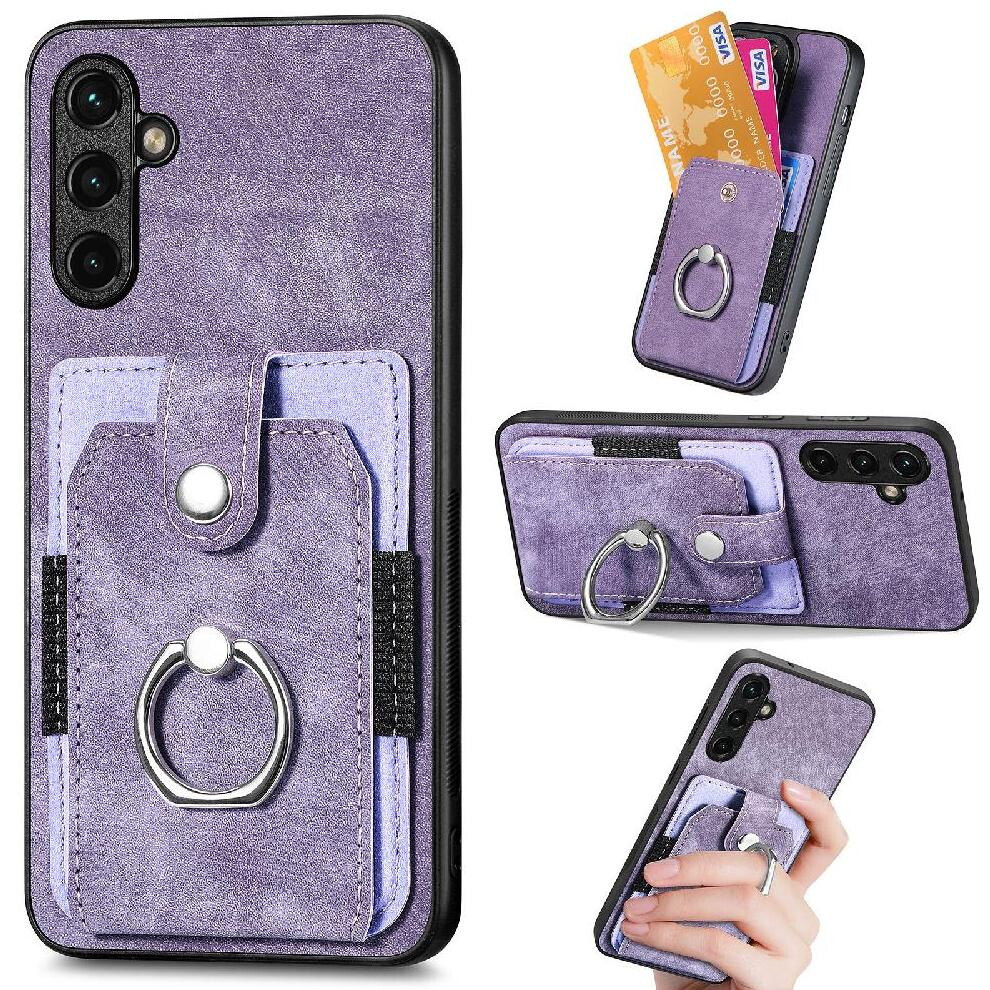 (Purple) Case for Samsung Galaxy A24 5g Stand Crad Slot Ring Holder Magnetic Car Mount