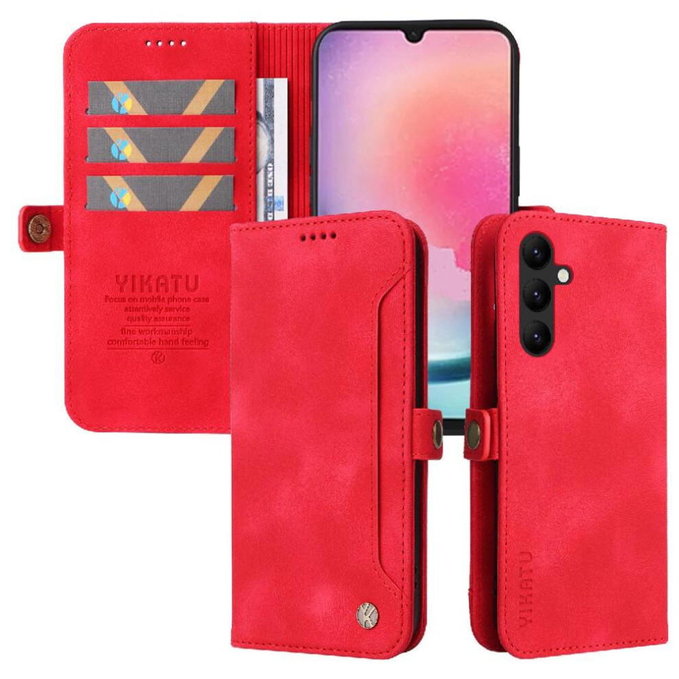 (Red) Flip Case for Samsung Galaxy A24 5g Luxury Soft Touch Leather Matte Tpu with 3 Card Slots and Money Pocket with 3 Card Slots