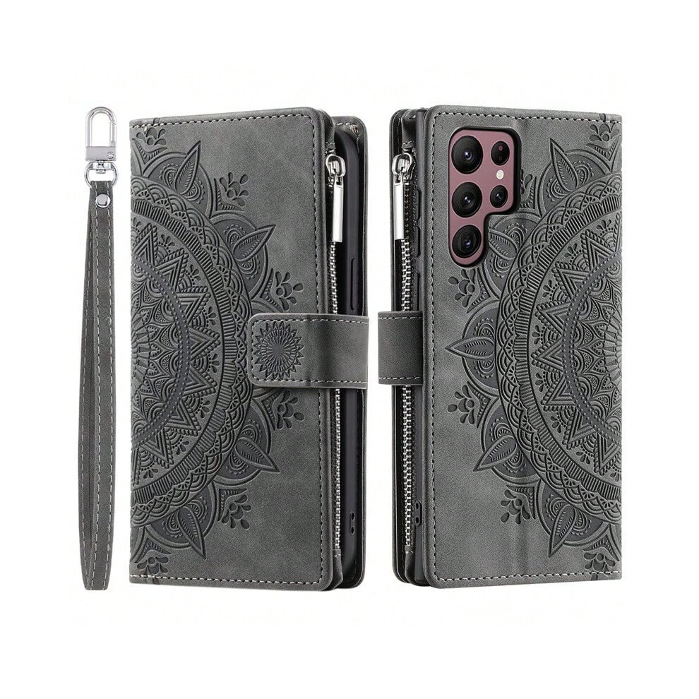 (Doka Totem - Gray, Samsung A24 4G/A25 5G) Suitable for Samsung S24ultra multi-carat zipper bag mobile phone leather case S23FE Mandala embossed card