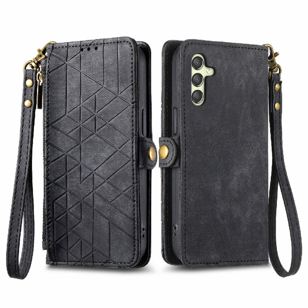 (Black) Wallet Case for Samsung Galaxy A25/a24 5g Scratch Resistant Card Slot Kickstand Magnetic Closure Wrist Strap