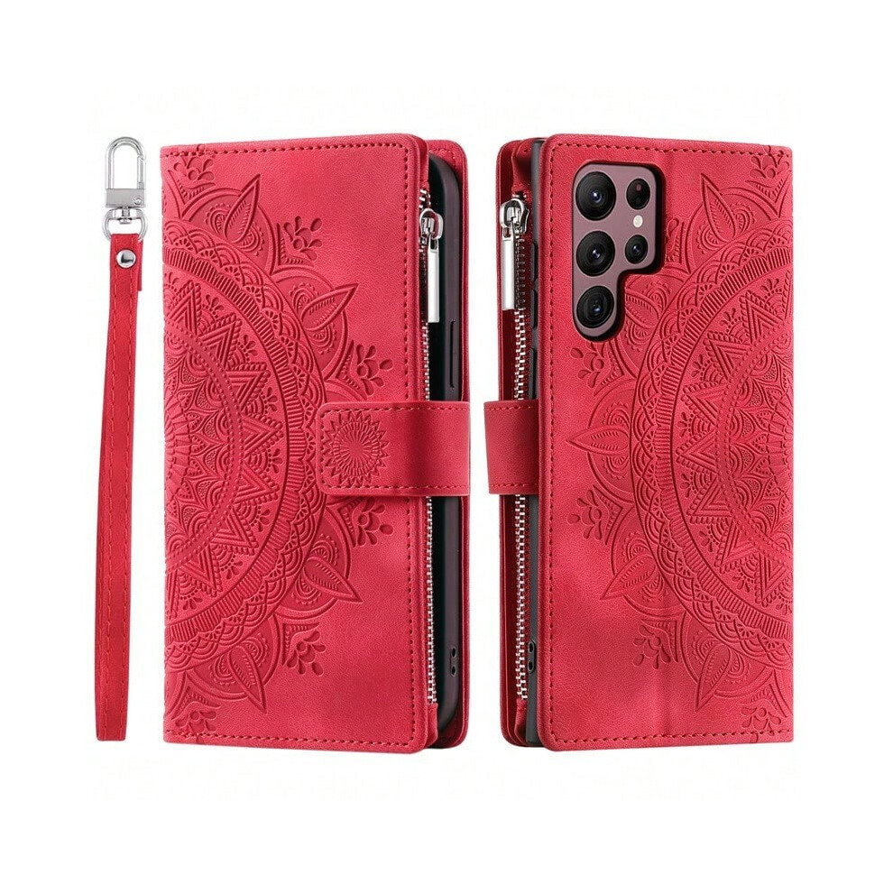 (Doka Totem - Red, Samsung A24 4G/A25 5G) Suitable for Samsung S24ultra multi-carat zipper bag mobile phone leather case S23FE Mandala embossed card p