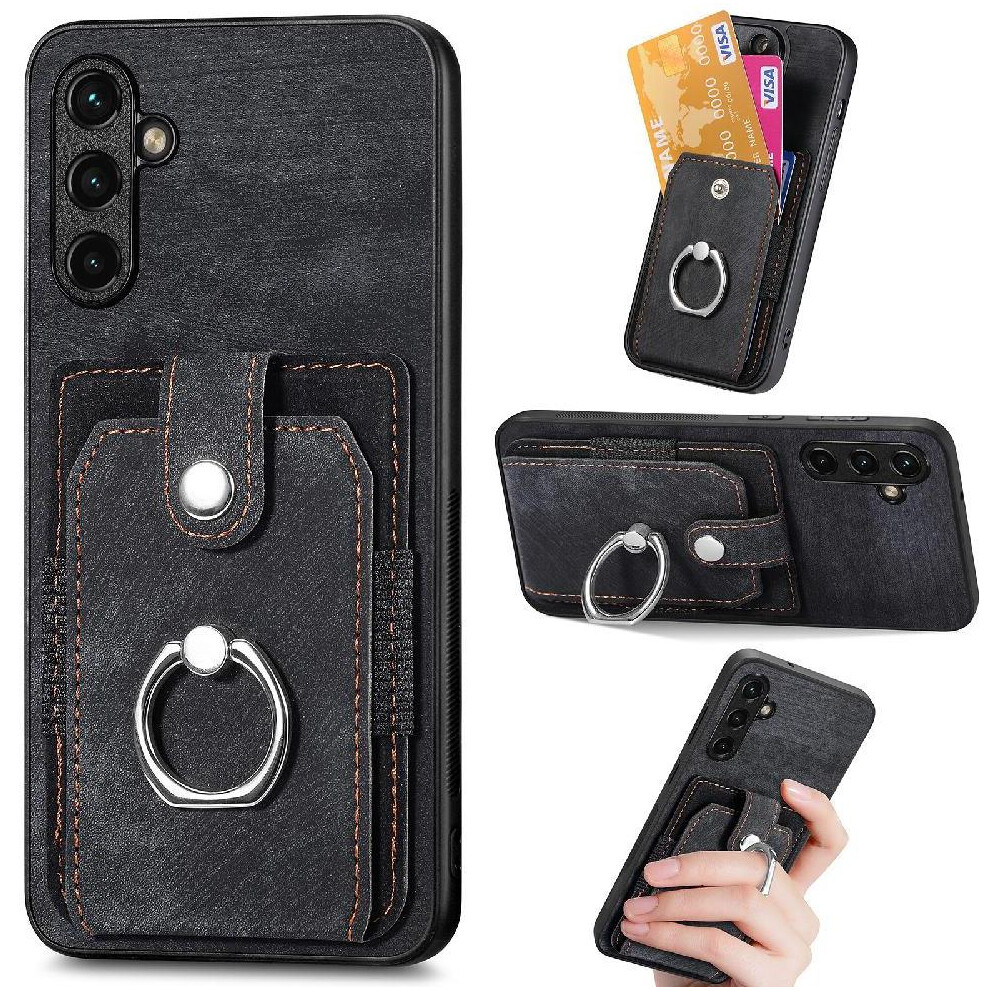 (Black) Case for Samsung Galaxy A24 5g Stand Crad Slot Ring Holder Magnetic Car Mount