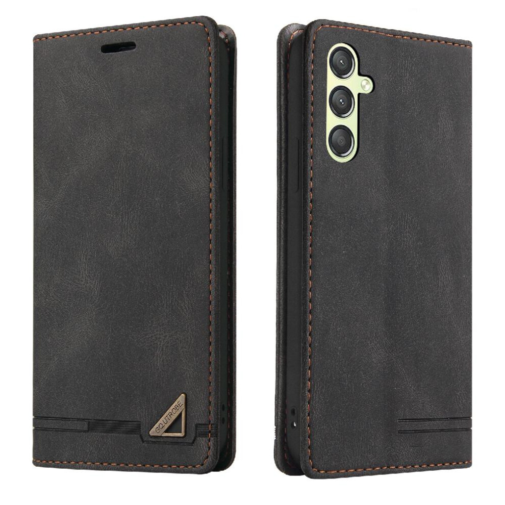 (black, Samsung A24 4G/A25 5G) Business Genuine Leather Wallet Case for iPhone 13 12 11 Card Holder Strong Magnetic Flip Cover For Samsung S22 S21 S20