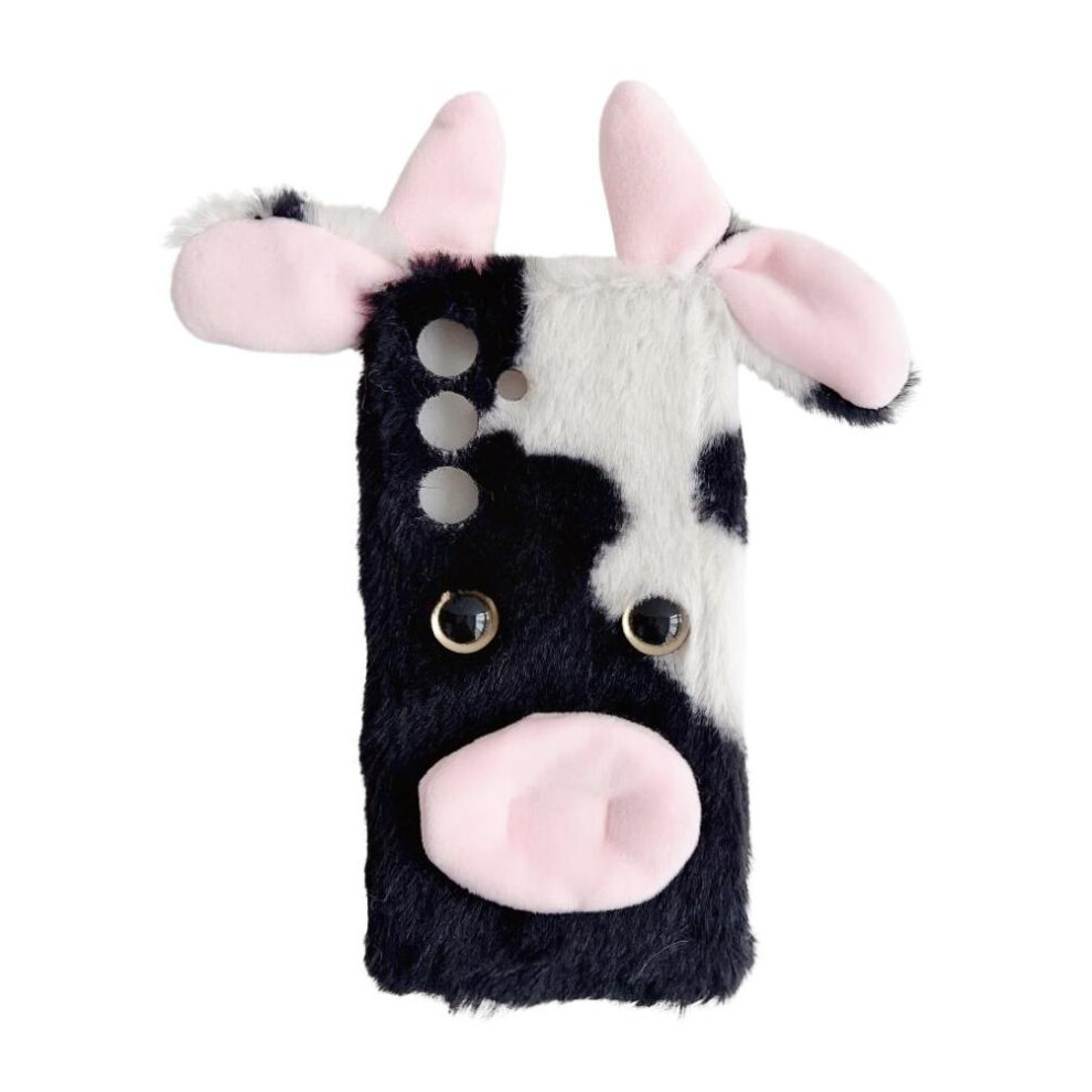 (Black) Case for Samsung Galaxy A24 5g Cow Phone Case Autumn and Winter Lovely Fuzzy Fluffy Cartoon Cow