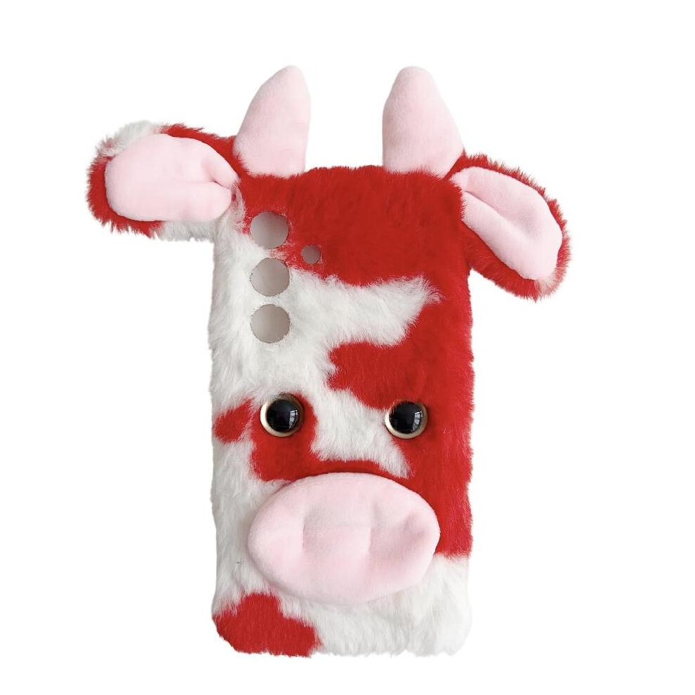 (Red) Case for Samsung Galaxy A24 5g Cow Phone Case Autumn and Winter Lovely Fuzzy Fluffy Cartoon Cow