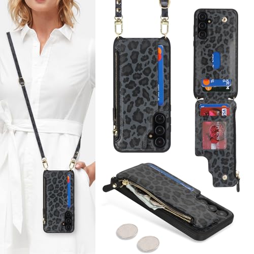 SailorTech for Samsung Galaxy A35 5G Phone Case with Credit Card Holder for Women, Samsung Galaxy A35 5G Leather Case Wallet Crossbody with Card Slots Zipper Shockproof Case for Men-Black Leopard