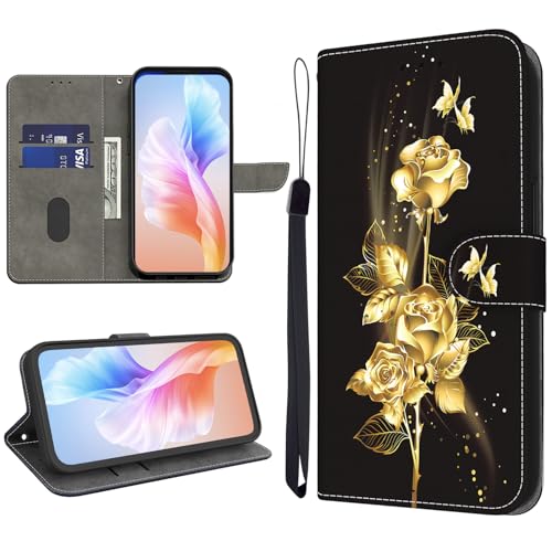 KEDBBAO Case for Samsung Galaxy A35 5G Case with Pattern, Credit Card Holder Magnet Wallet Protective PU Leather Case for Samsung A35 5G Phone Case, Golden Rose