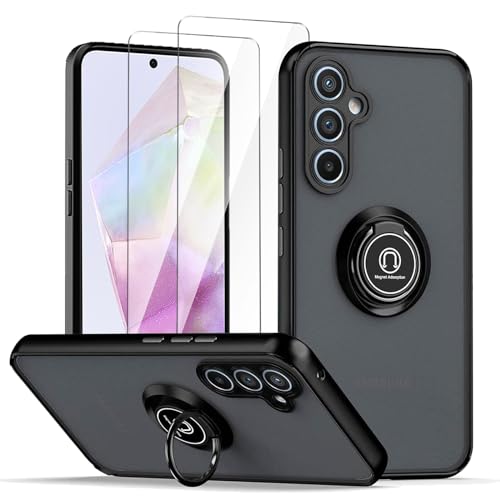 LYZXMY Case for Samsung Galaxy A35 5G Black with Ring Stand Case + 2 x TempeBlack Glass Screen Protector,PC +TPU Shockproof Anti-Scratch Phone Case Cover
