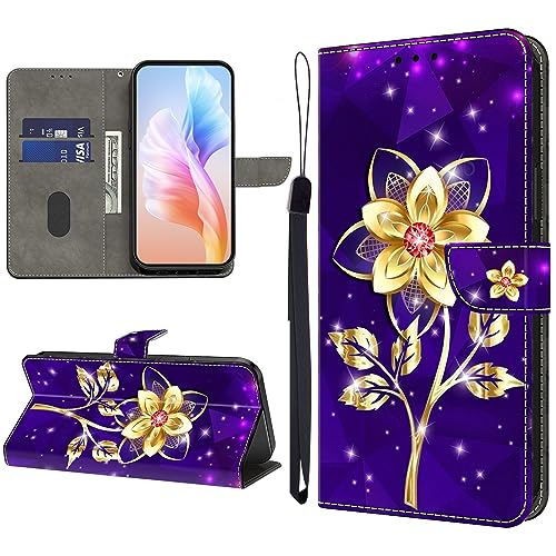 KEDBBAO Case for Samsung Galaxy A35 5G Case with Pattern, Credit Card Holder Magnet Wallet Protective PU Leather Case for Samsung A35 5G Phone Case, Golden Flower