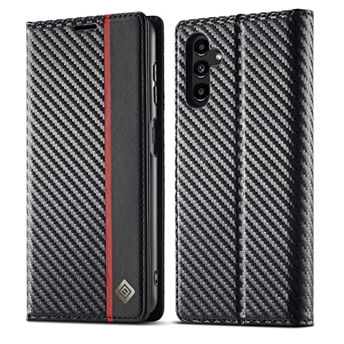 ZTOFERA Compatible with Samsung Galaxy A35 5G Wallet Case, Carbon Fiber Flip Case with Card Holder Premium PU Leather Magnetic Closure Kickstand Protective Phone Cover, Vertical Red Line