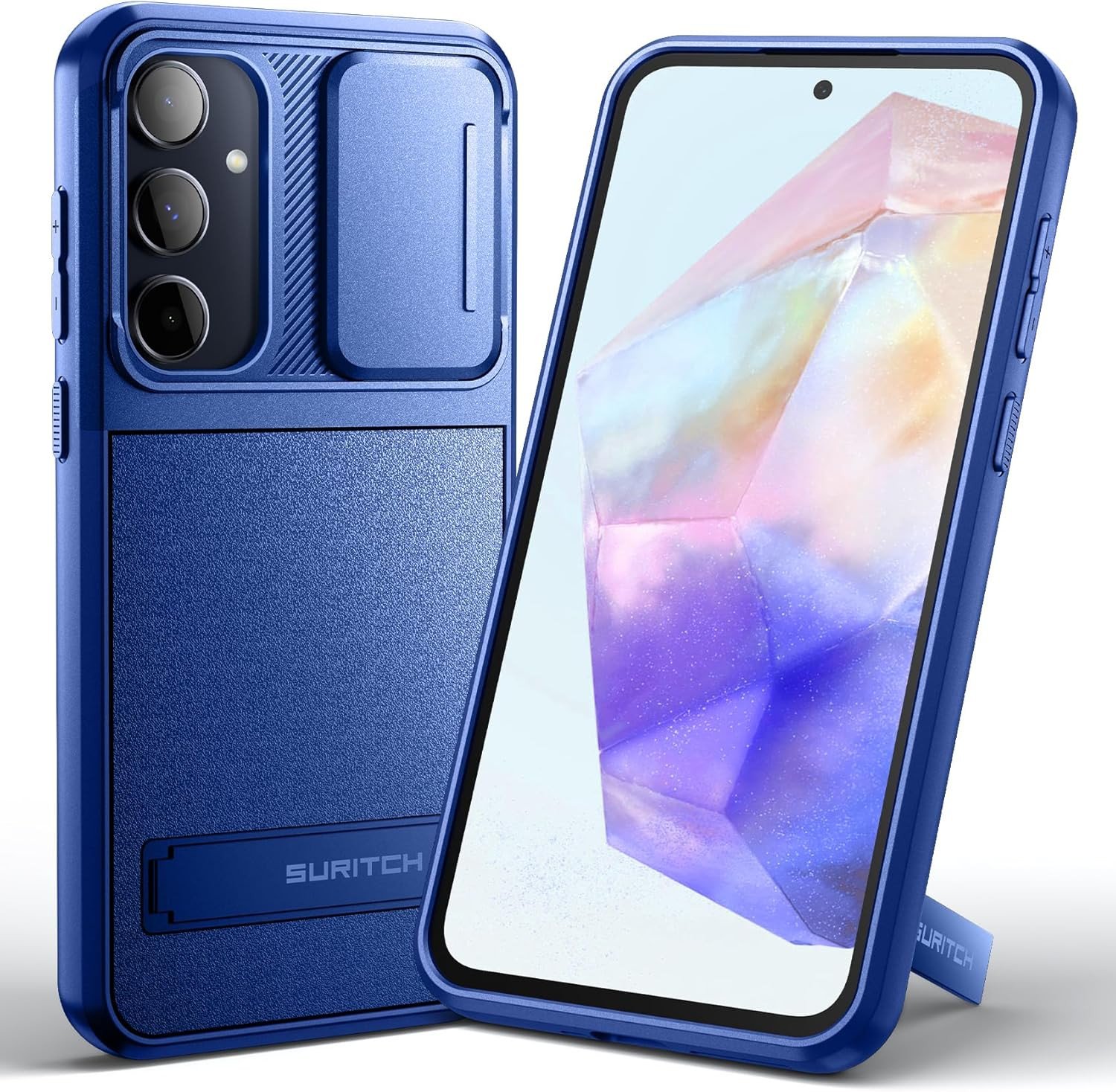 Samsung Galaxy A35 5G/A55 5G Case with Screen Protector, Military Shockproof Rugged Heavy Duty Protection Slim Clear Cover Phone Case (Blue)