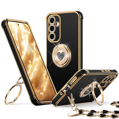 XYZ For Galaxy A35 5G Case with Stand, Samsung A35 Phone Case with Double Ring, Women Girls Bling Luxury Protective Heart Case for Samsung Galaxy A35, Black