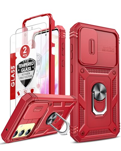 LeYi for Samsung Galaxy A35 5G Case with Camera Cover Slider, 360 Full Body Armour Phone Cover Tough Hard Protective | 2 Pack Tempered Glass Screen Protector | Ring Stand Holder for Samsung A 35 Red