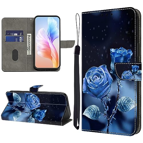 KEDBBAO Case for Samsung Galaxy A35 5G Case with Pattern, Credit Card Holder Magnet Wallet Protective PU Leather Case for Samsung A35 5G Phone Case, Blue Rose