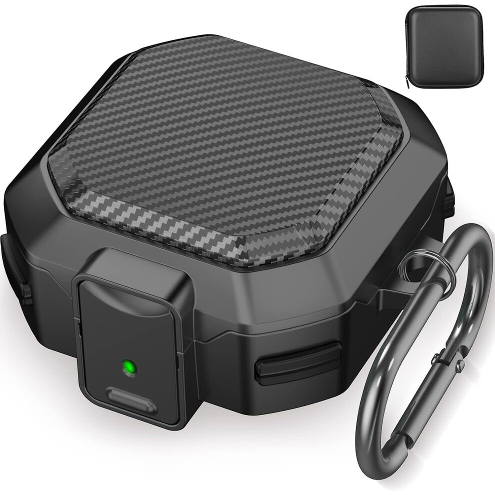 (Carbon Fiber-Black) (with Secure Lock) Armor Case Cover For Samsung Galaxy Buds 2 Pro(2022) /galaxy Buds Pro(2021) /galaxy Buds 2 (2021) /galaxy Buds