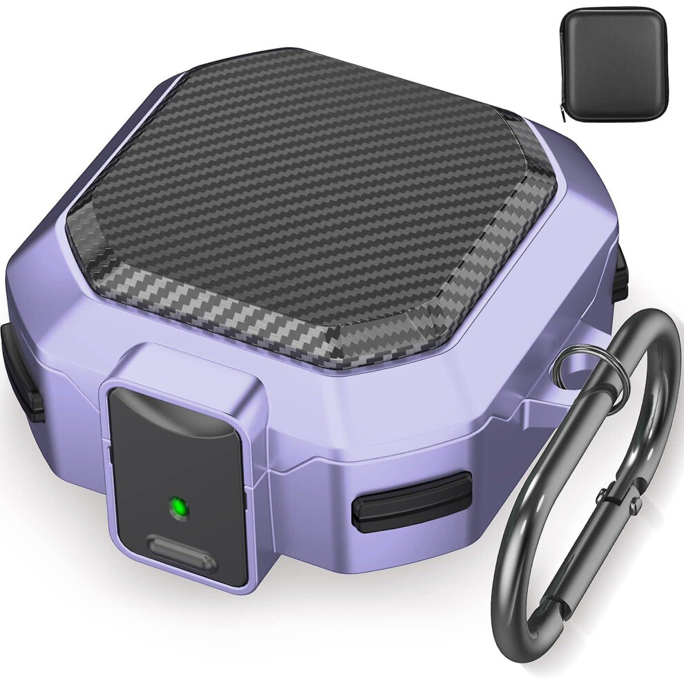(Carbon Fiber-Purple) (with Secure Lock) Armor Case Cover For Samsung Galaxy Buds 2 Pro(2022) /galaxy Buds Pro(2021) /galaxy Buds 2 (2021) /galaxy Bud