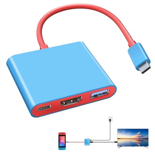 Switch Dock for Nintendo Switch USB-C 3.0 Docking Station Compatible with Nintendo Switch, Samsung Dex MacBook IPad Steam 3 in 1 TV Adapter with 4K HDMI thunderboltn Type C 100W Charging (Blue+Red)