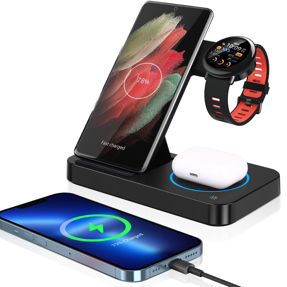 3-in-1 Android Wireless Charger Compatible with Samsung Devices, Charging Dock Compatible with Galaxy Phone and Watch