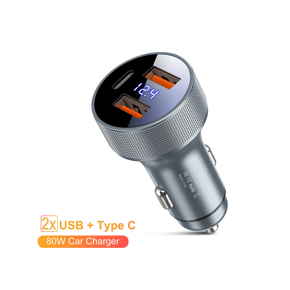 Tkey 80W Fast Car Phone Charging USB PD Quick Charge 3.0 Type C Charger For iPhone 13 Samsung Dual Car USB Charger Adapter