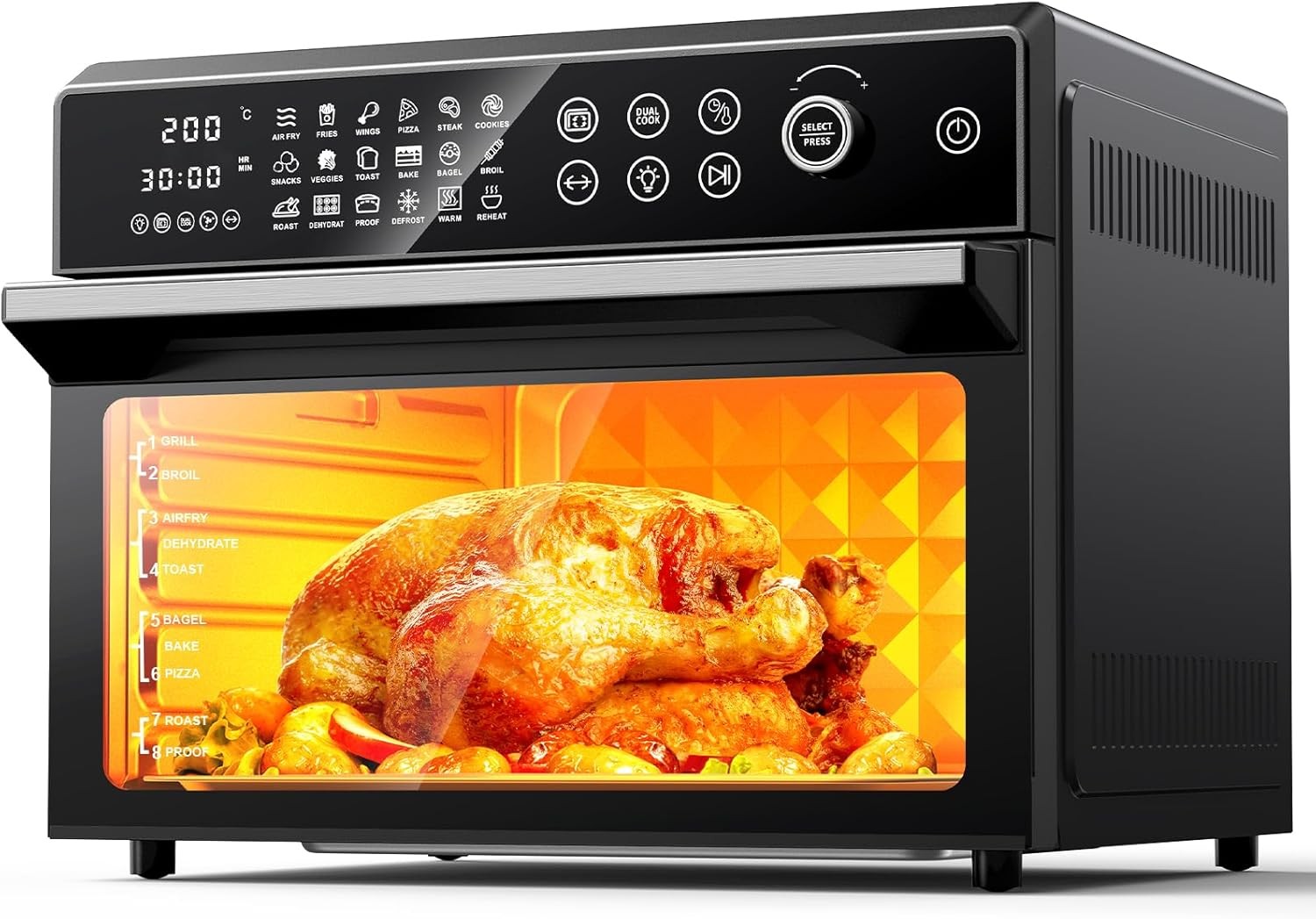 30L Air Fryer Oven, 18 in 1 Presets Dual-Cook Function Air Fryer, 360ÃÃHot Air Circulation Technology/Digital Knob/LED Touch Panel/Timer & Temperatu