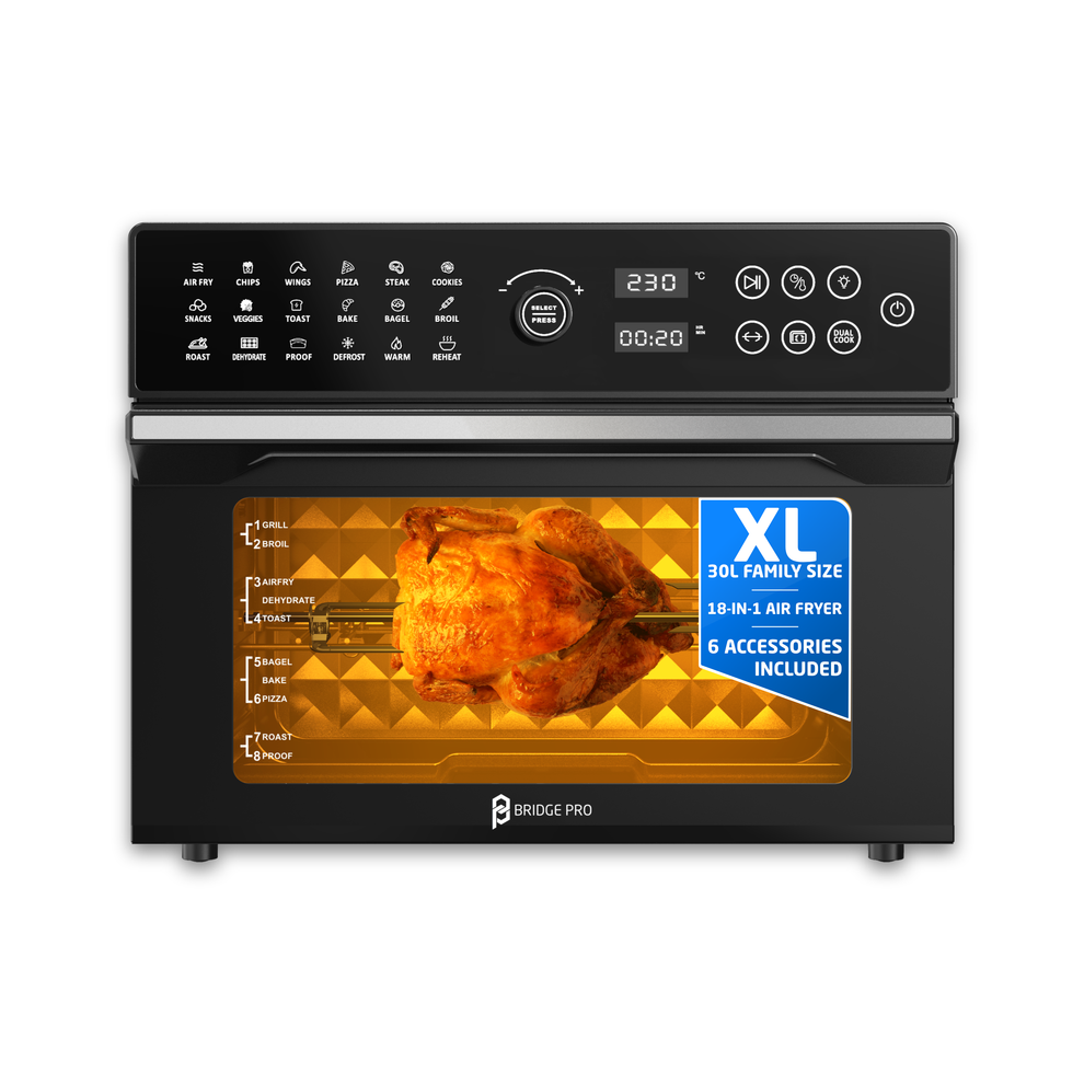 Bridge Pro 30L Air Fryer Oven 1800W, 20-in-1 Dual Cook, Rotisserie, XL Family Size, Roast, Bake, Reheat, Dehydrate, Digital Touch, Fast Cooking