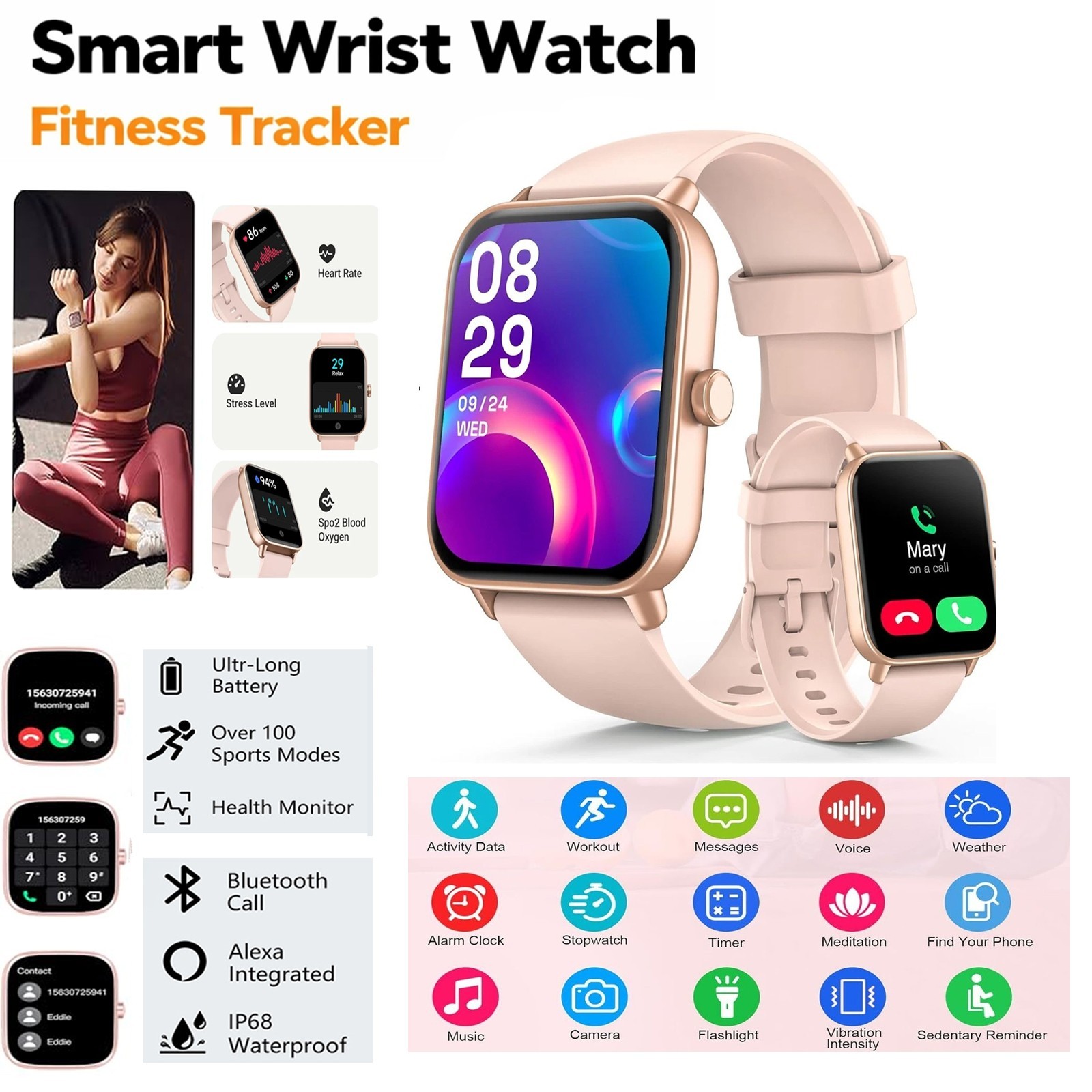 Smart Watch for Women, Answer/Make Calls, Smart Watches for Women iPhone/Samsung/Android,Alexa Built-in, Fitness Watch with Heart Rate Sleep SpO2 Monitor,IP68 Waterproof, 100+ Sports