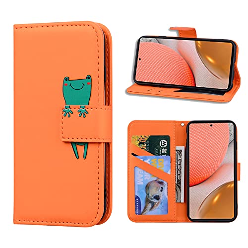 Norn Samsung Galaxy A72 5G(6.7") leather Wallet Case,Cartoon Phone Case with Kickstand,Folding Stand PU Leather wallet,shokproof Flip Cover Protective Case with Card Slots,Magnetic Closure,Orange