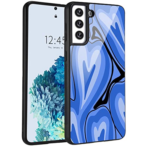 MAYCARI Aesthetic Blue Heart Phone Case Designd for Samsung Galaxy S21 5G for Women Girls, Shockproof Hard Back Case with Soft TPU Bumper Cover Phone Case for Samsung Galaxy S21 5G 6.2 Inch