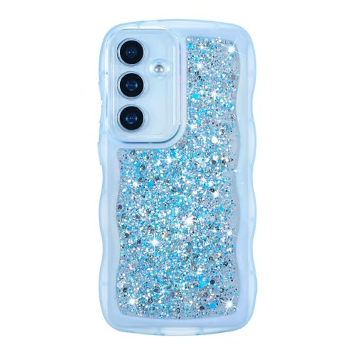 ZTOFERA Wavy Case for Samsung Galaxy S24 5G (6.2"), Cute Girly Clear Curly Wave Frame Glitters Shiny Sequins Aesthetic Phone Case Soft TPU Lightweight Shockproof Bumper Protective Cover - Blue