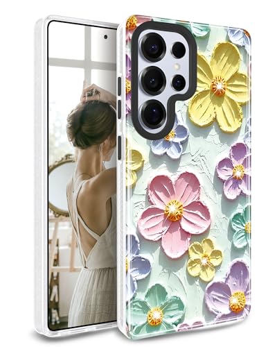 JIAXIUFEN for Galaxy S25 Ultra Case Sparkle Glitter Retro Oil Painting Printed Flower Design Shockproof Cover Phone Case for Samsung Galaxy S25 Ultra 5G 6.9 inch Mint Colorful